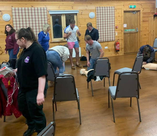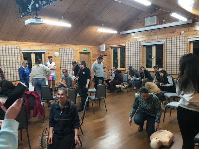 30 club officers attending a basic first aid save-a-life course with FAB Training on Thursday 5th October 2023 at Arkendale Community Hall, near Knaresborough. Each participant on completion of the course received a first aid kit to use at their club.
