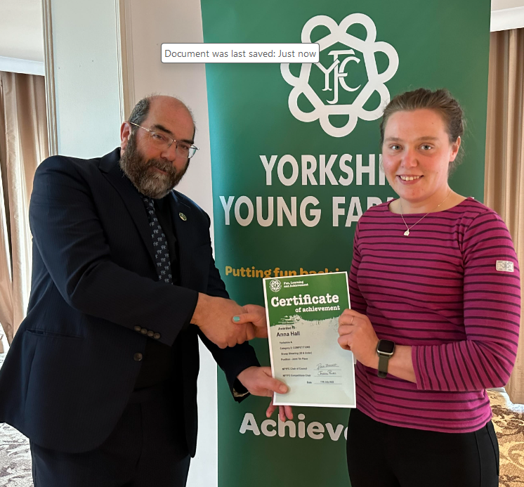 Thank you to everyone who attended our 50th Yorkshire AGM, we had a great evening celebrating the past 12 months and looking forward to a year of events and competitions. Thank you to Mr Jim Barton, Honorary Life Member and Mr Adrian Willis County President for presenting the awards. Huge thanks to Stuart Robson and Alex McMenemy from County Durham YFC who judged the Best Speech of the evening presenting the Alan Goldie Trophy to Ben Robinson, from Tadcaster & Wetherby YFC.