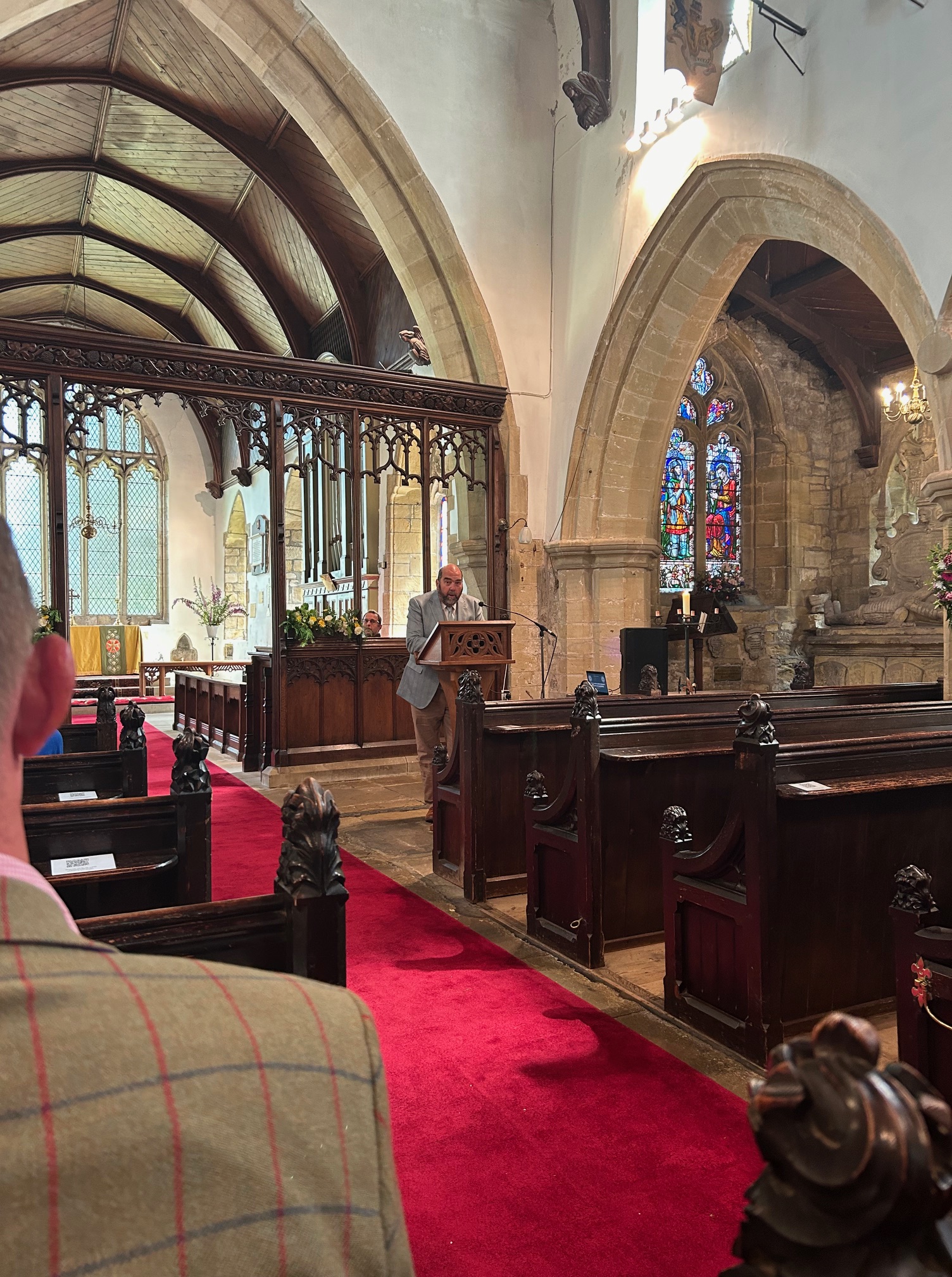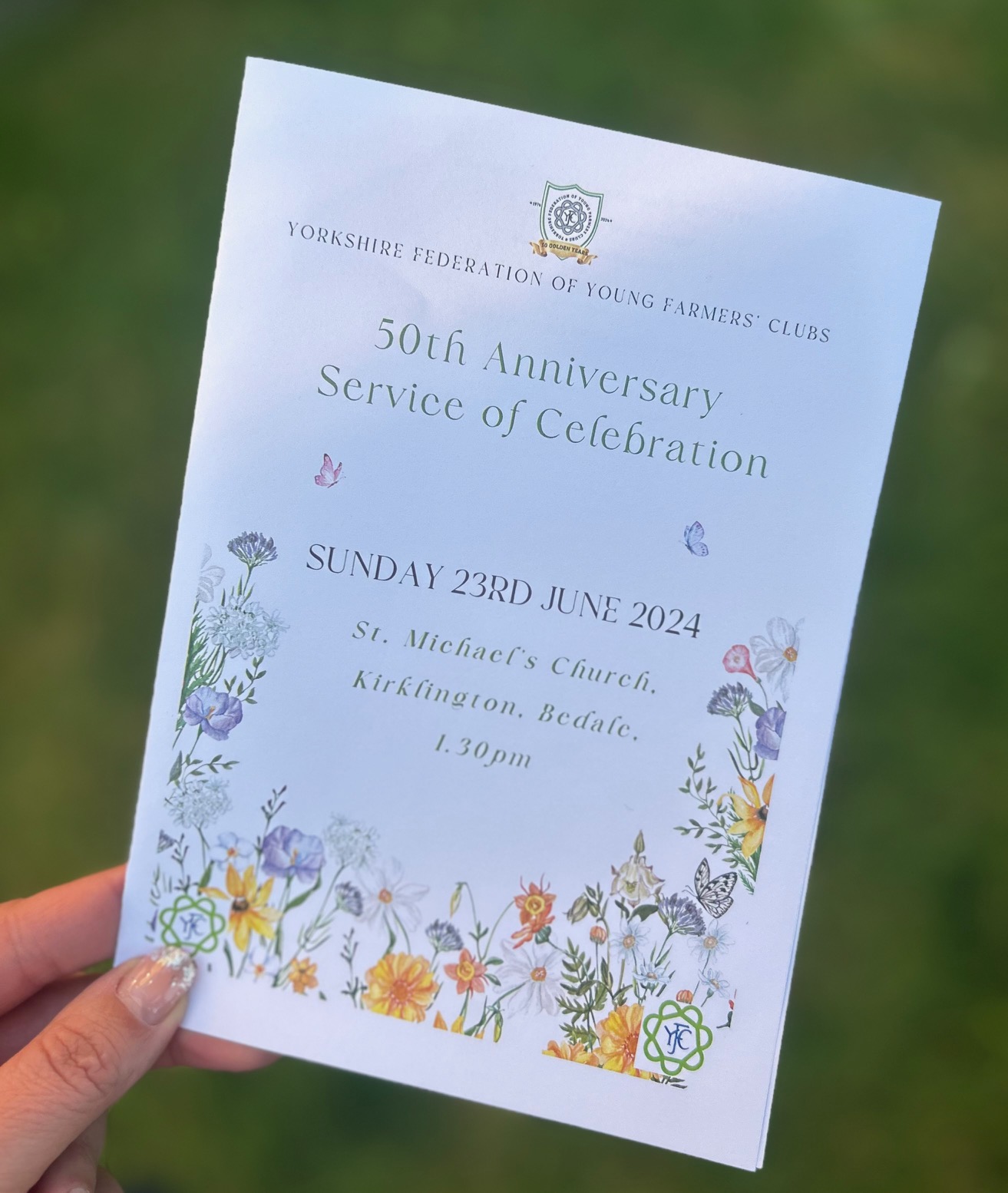On Sunday 23rd June 2024 we gathered together for a Service of Celebration at St. Michaels Church, Kirklington, Bedale with Reverend James Gwyn-Thomas. The welcome was kindly given by County President Adrian Willis, with a bible reading given by Isabelle Bush of Farnley Estate YFC, a poem written and presented by Kelly Armitage, Lawkland YFC and prayers by Joe Holmes, Worth Valley YFC. After a beautiful service we were served afternoon tea in the village hall by Rosie, Emma and Erin from Lawkland YFC. It was lovely to get together to reminisce about times gone by, remember absent friends and wonder what the next fify years holds for YFYFC.